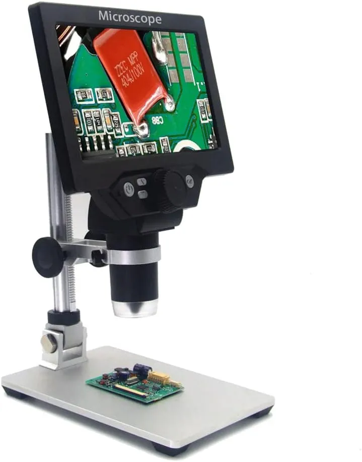 ميكروسكوب رقمي محمول G1200 بشاشة 7 بوصة، دقة 12MP، وتكبير حتى 1200X، مثالي للتعليم، المختبرات، وصيانة الإلكترونيات.
