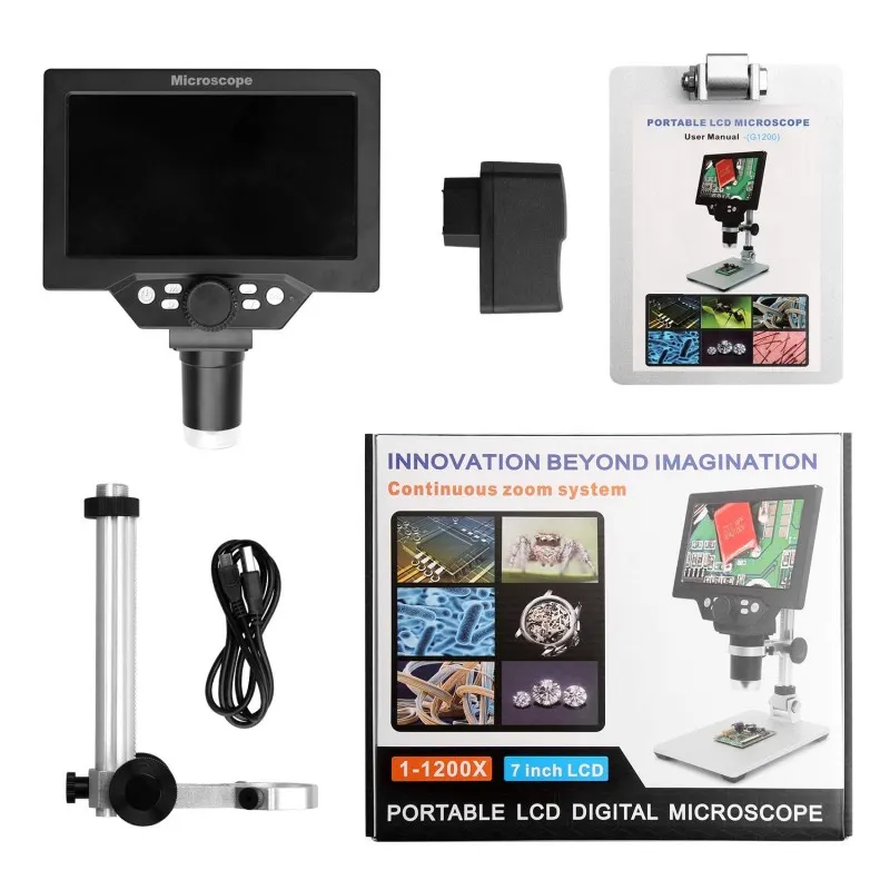ميكروسكوب رقمي محمول G1200 بشاشة 7 بوصة ودقة 12 ميجابكسل وتكبير 1200X