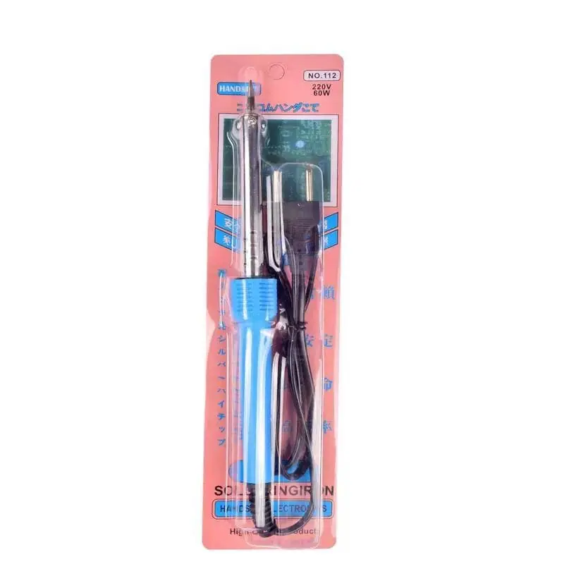 كاوية لحام يدوية من HANDSKIT بقوة 60 وات، تعمل على كهرباء 220 فولت. أداء ثابت، وسخان داخلي سريع التسخين مناسب لأعمال اللحام الدقيقة والإلكترونيات.