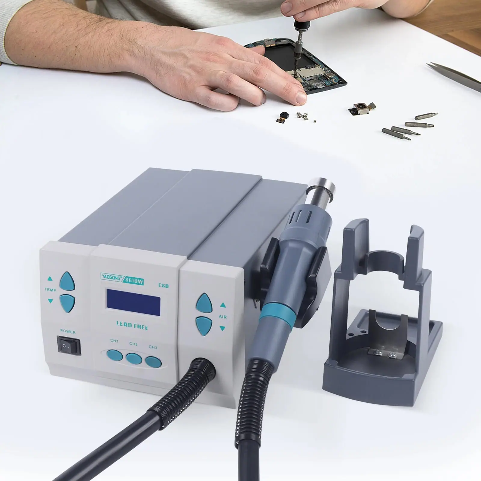 محطة إعادة اللحام بالهواء الساخن 861DW هي وحدة احترافية مصممة لتلبية متطلبات الصيانة الدقيقة، خاصة في أعمال إعادة اللحام لشرائح BGA ومكونات SMD. تأتي بجهد تشغيل 110 فولت وتوفر تحكمًا متقدمًا في درجة الحرارة وسرعة الهواء.