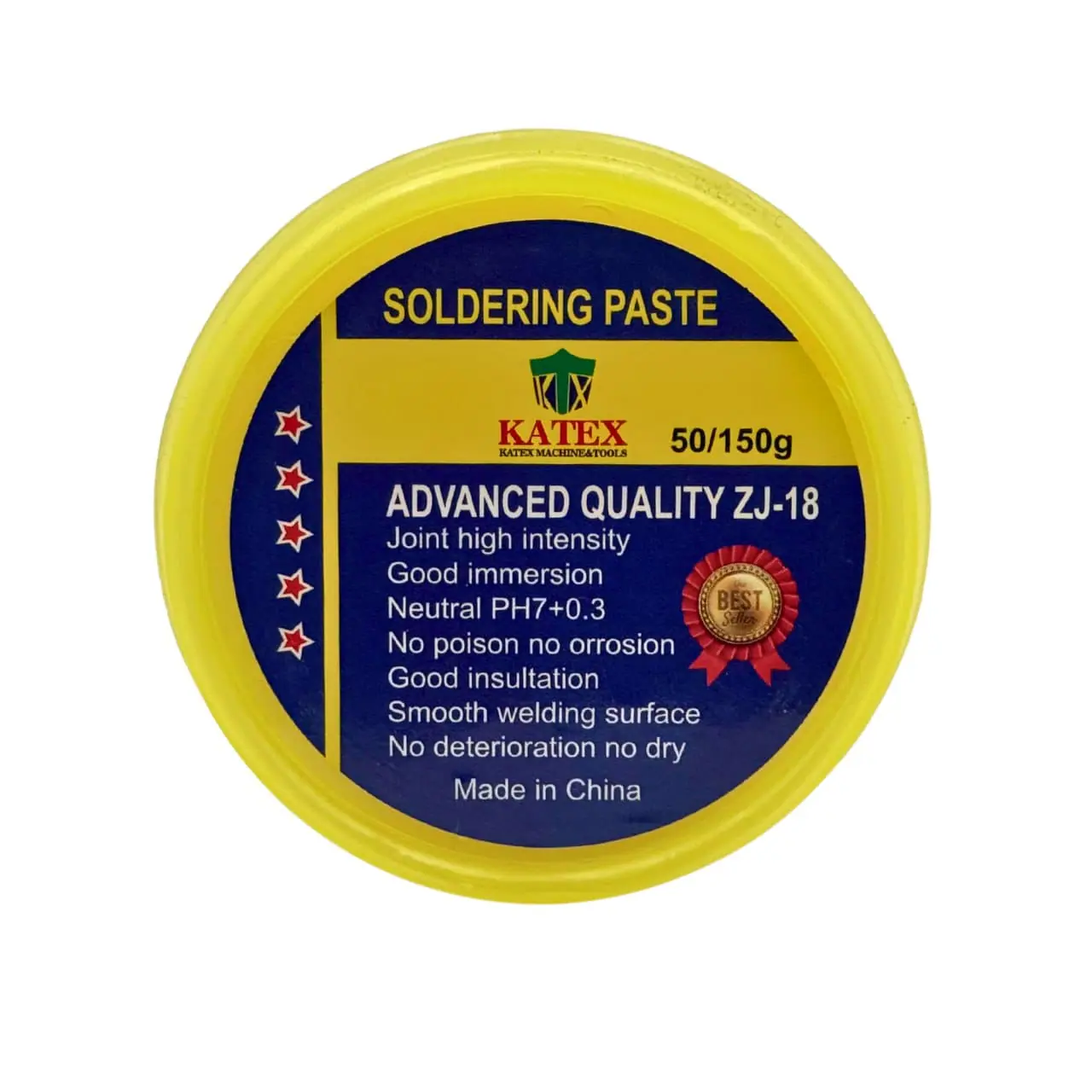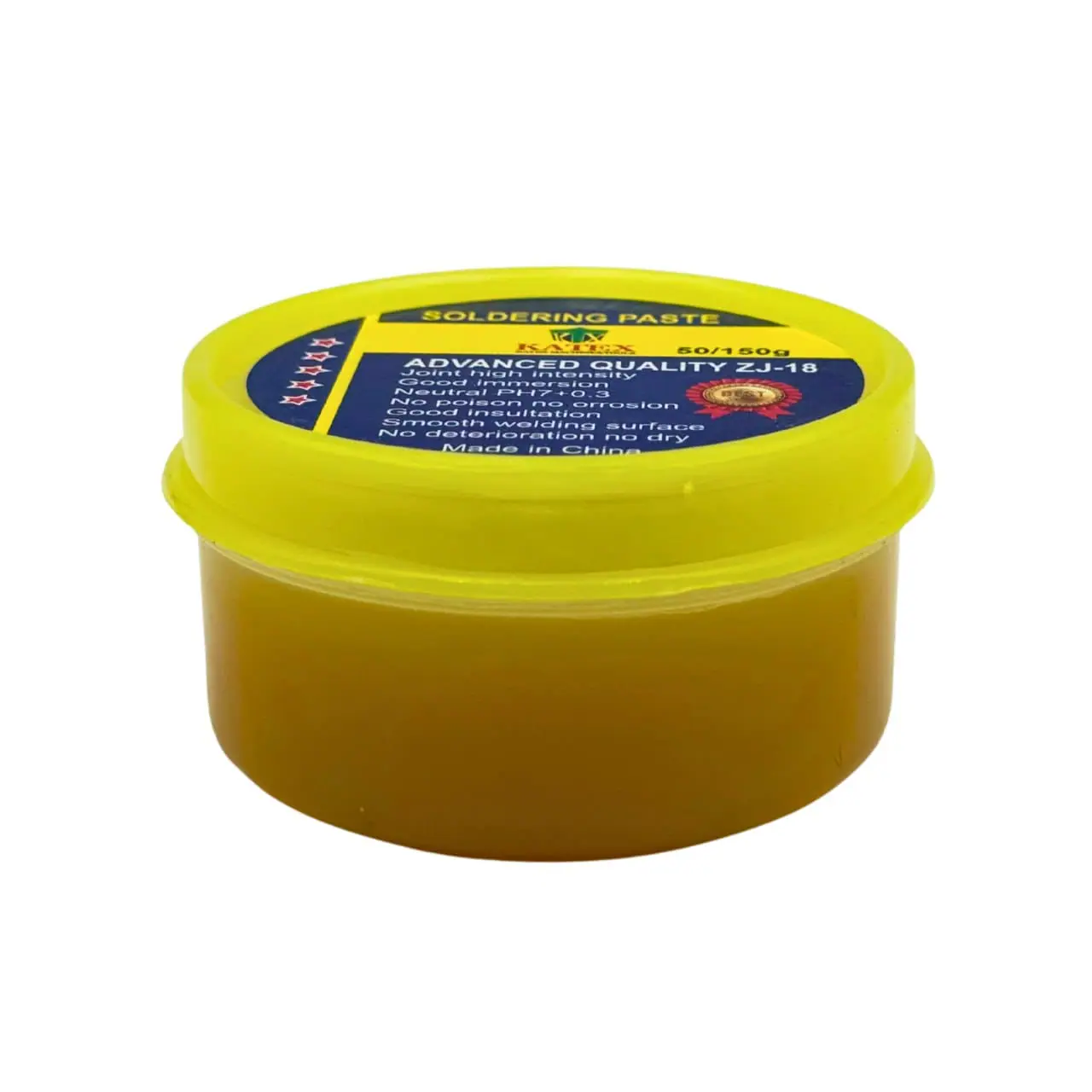 فلكس كاتكس ZJ-18 مساعد لحام بوزن 50/150 جرام، آمن على المكونات، يعزز التصاق القصدير ويضمن لحام ناعم ودقيق.
