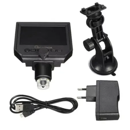 يأتي الجهاز مزودًا بشاشة 4.3 بوصة ملونة تسهل متابعة التفاصيل دون الحاجة إلى أجهزة إضافية. علاوة على ذلك، فإن الكاميرا المدمجة بدقة 3.6 ميجابكسل تمنح صورًا نقية للغاية. بالإضافة إلى ذلك، يتيح لك التكبير حتى 600X استكشاف أدق التفاصيل في العينات أو المكونات الإلكترونية الصغيرة.
