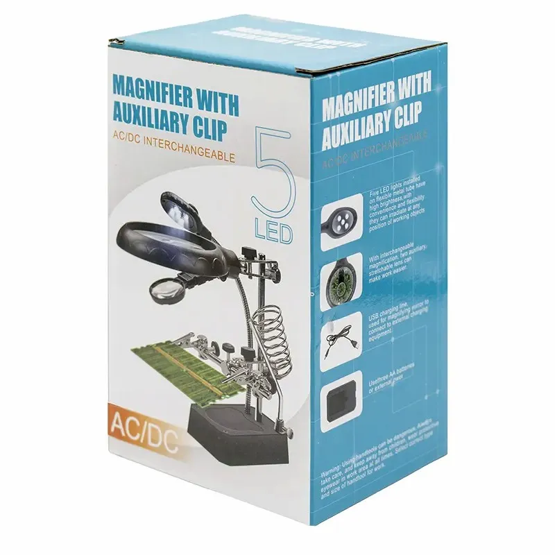 بالإضافة إلى ذلك، يحتوي على عدسة مكبرة عالية الجودة تساعدك على تكبير رؤية المكونات الصغيرة مثل الآيسيهات والأسلاك الدقيقة.